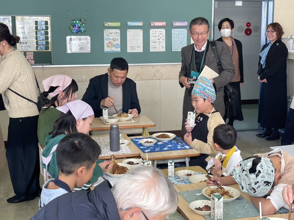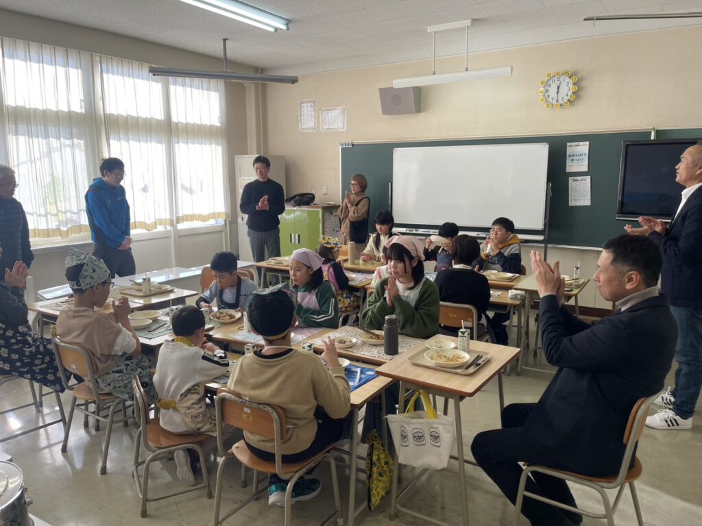 代表の増田が途別小学校を訪問し、子どもたちと一緒に給食をいただきました。